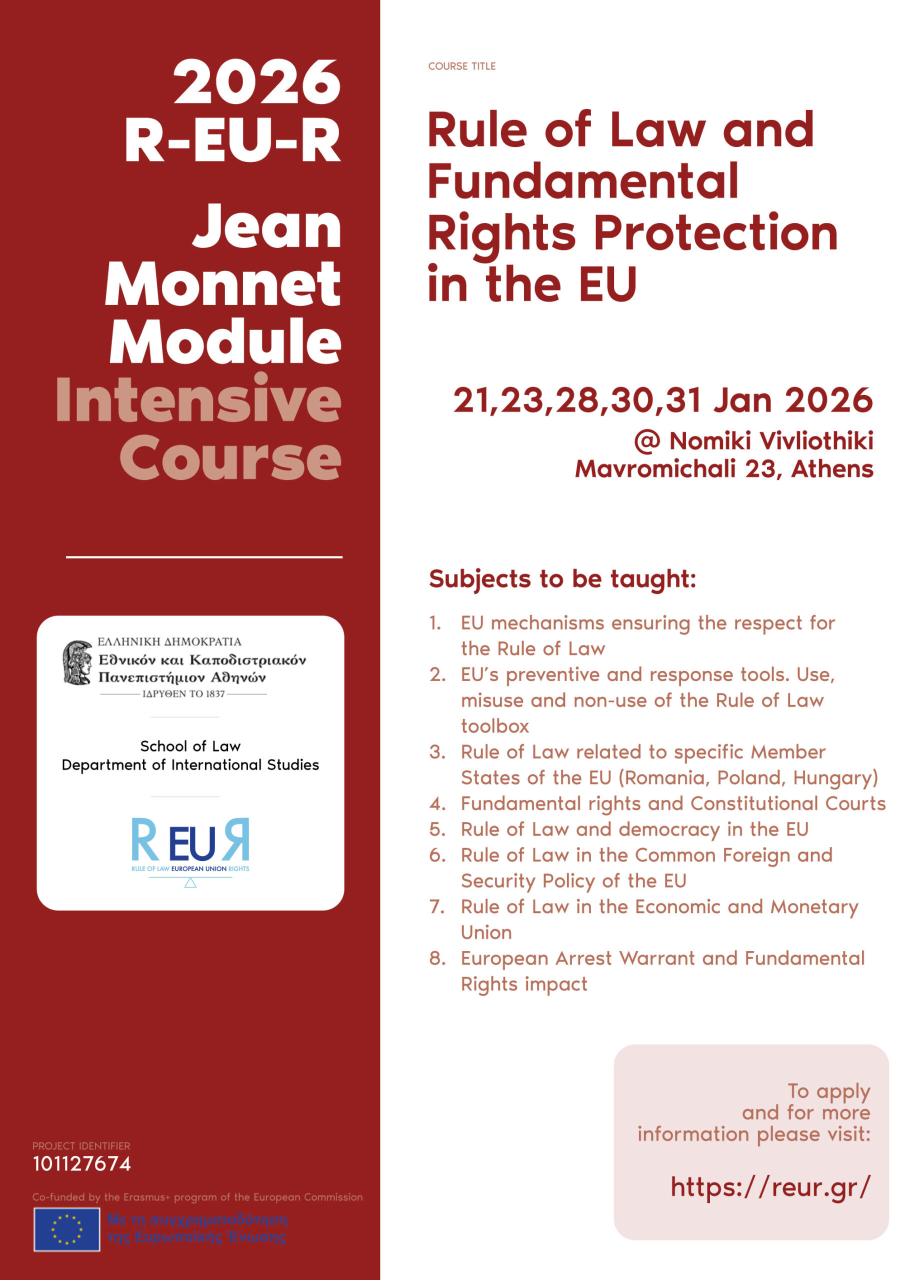 The fourth R-EU-R course will occur for 5 days between the 21st and 30th of January at the Nomiki Vivliothiki building, Mavromichali 23, Athens.